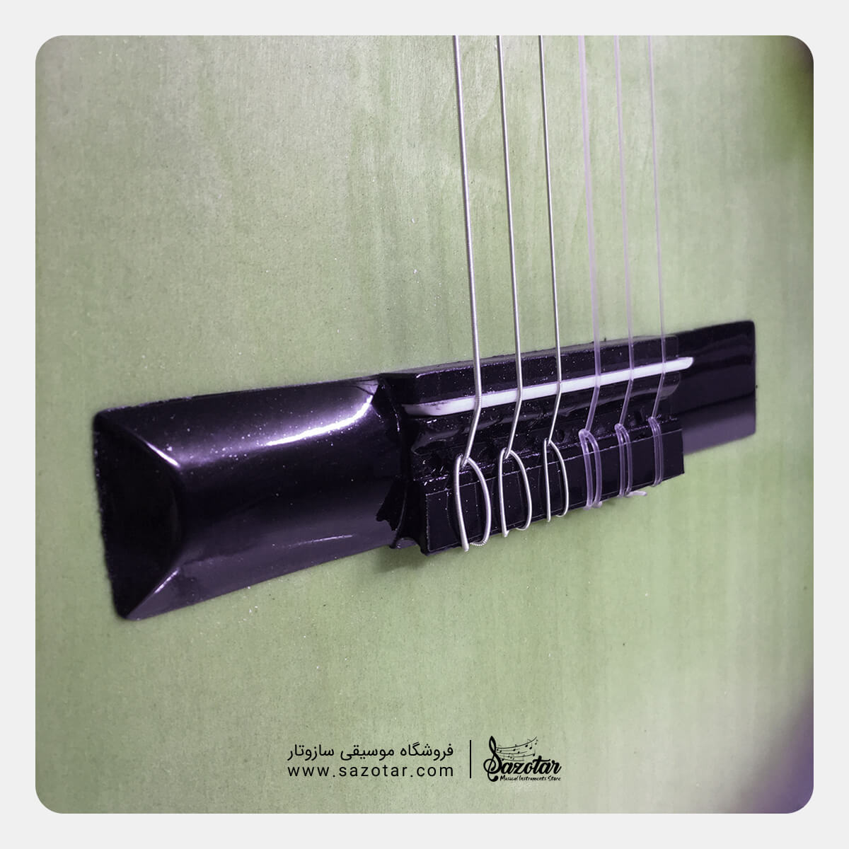 این گیتار دستهای از جنس چوب افرا دارد که به صفحهی انگشتگذاری با 19 فرت مجهز شده است. تناسب فرتها و استاندارد قرارگیری آنها باعث تولید صحیح. و بینقص نتها را در کنار راحتی نوازنده هنگام اجرا تضمین میشود. صفحه رو، پشت و کنارههای گیتار از جنس چوب لمینت است. سیمهای گیتار به اصطلاح سیمهای تست هستند. اما شما به عنوان نوازنده مبتدی میتوانید از آن استفاده کنید. و پس از چند ماه سیمهای ساز را ارتقا دهید.