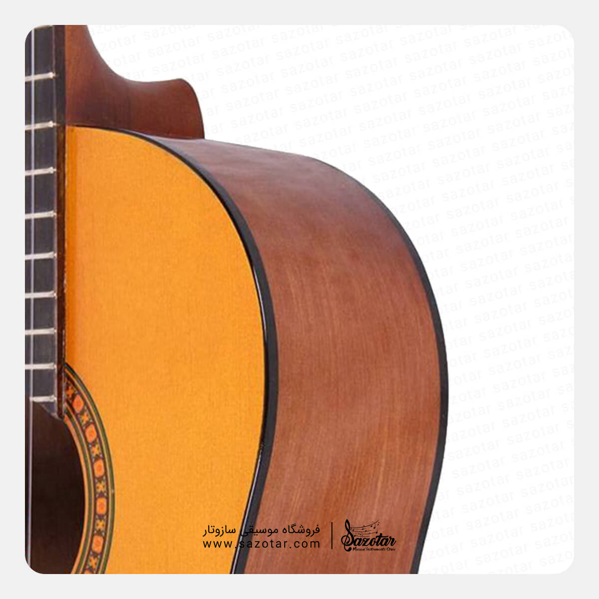پشت و کنارههای گیتار از جنس چوب مرانتی و صفحهی رویی آن از جنس چوب صنوبر است. صفحهی رویی صنوبر، صدایی زیبا و گرم به گیتار CS40 میبخشد که برای اجرای تمرینات مقدماتی بسیار مناسب است. همچنین شما میتوانید نمونه صدای این گیتار را در اینستاگرام سازوتار مشاهده کنید. شاید برخی از پایینبودن انتشار صدای گیتار کلاسیک یاماها CS40 گله کنند. ولی این دقیقا همان چیزی است که یک نوازندهی تازه کار برای یادگیری تدریجی آهنگها نیاز دارد. با وجود این گیتار کلاسیک یاماها CS40 به عنوان یک ساز ارزان قیمت، هنوز هم صدا و تنالیتهای خوب دارد. و میتواند تا سطوح بالای نوازندگی و برای زمانی طولانی پاسخگوی نیاز شما باشد. ماشین هد باکیفیت این گیتار از جنس کروم به شما اجازه میدهد نحوهی کوککردن گیتار را بهسادگی بیاموزید.